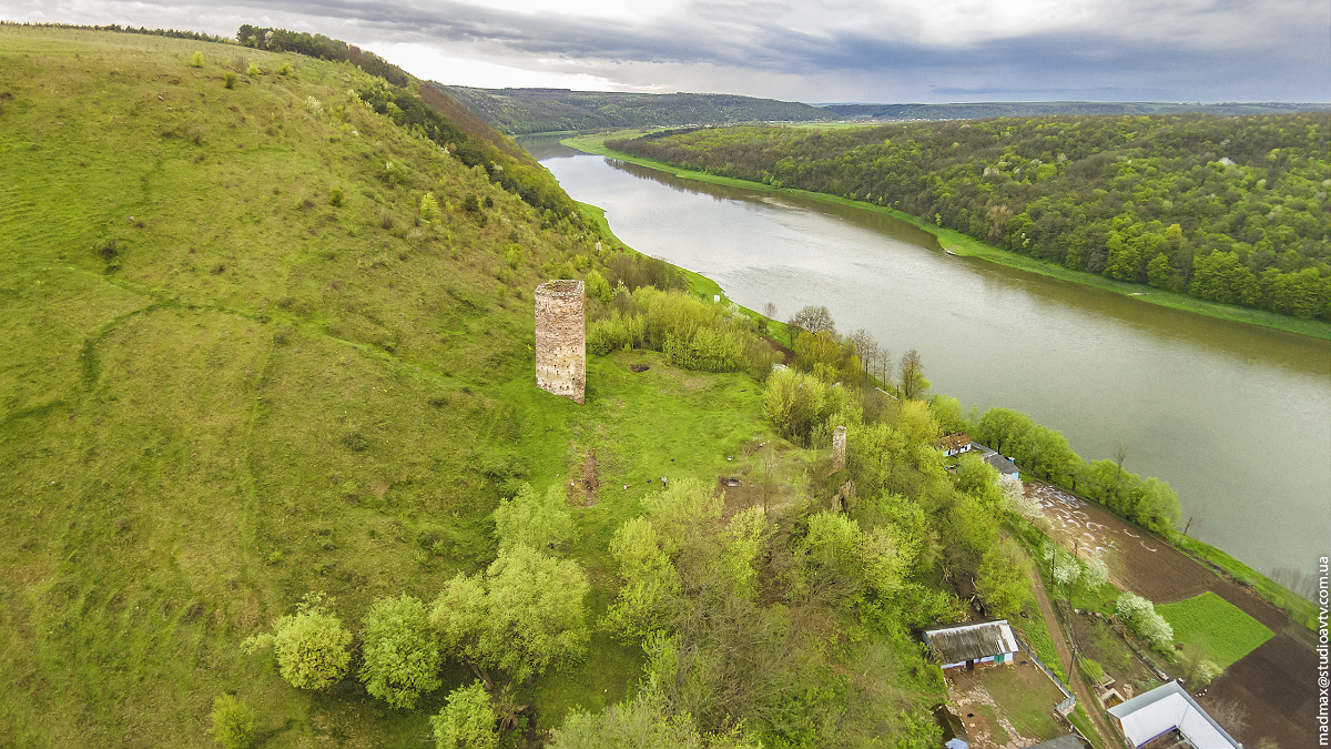 У сонячну погоду руїни замку виглядають особливо мальовничо — на фоні дністровських каньйонів, із видом на зелені схили й долину, яка колись служила природним ровом.